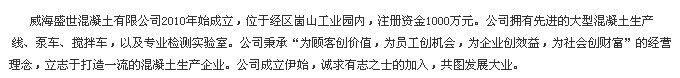 威海盛世混凝土公司公司簡介,關于威海盛世混凝土公司