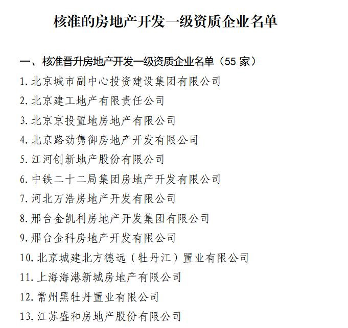 房地產(chǎn)開發(fā)資質(zhì)分為兩個(gè)級(jí)別,國家一級(jí)資質(zhì)是最高級(jí)別,對(duì)企業(yè)的整體規(guī)模、開發(fā)業(yè)績、施工質(zhì)量、人員配備、從業(yè)年限等均有要求,獲批難度較大。本次全省僅3家企業(yè)核準(zhǔn)晉升房地產(chǎn)開發(fā)一級(jí)資質(zhì)。