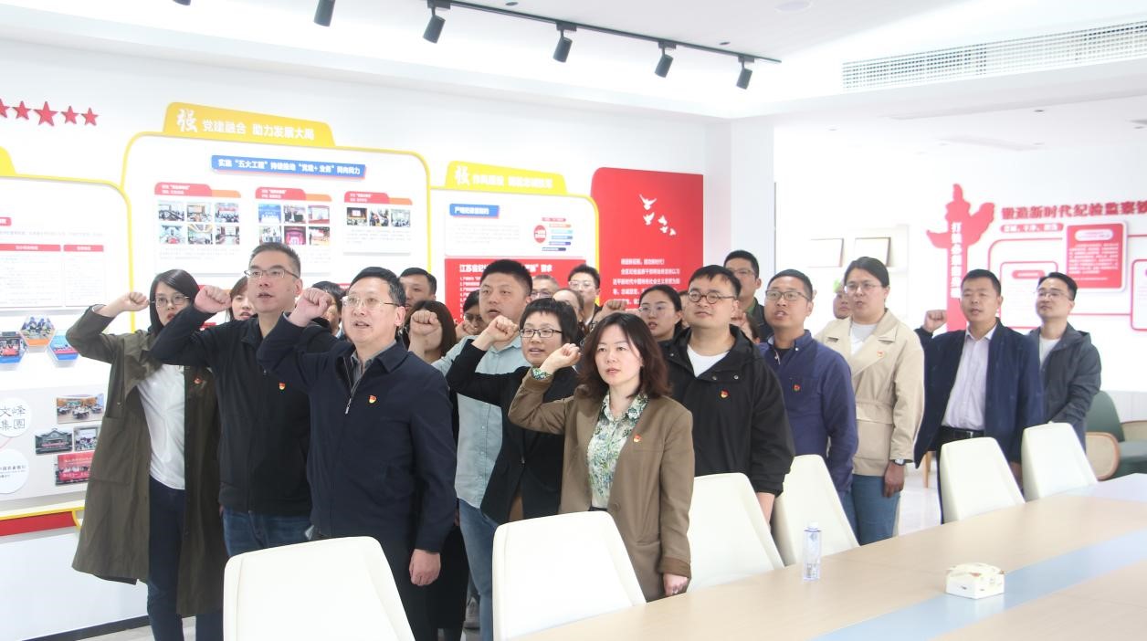 活動(dòng)最后,全體支部黨員肅然而立,面對(duì)鮮艷的黨旗鏗鏘有力地重溫了入黨誓詞。