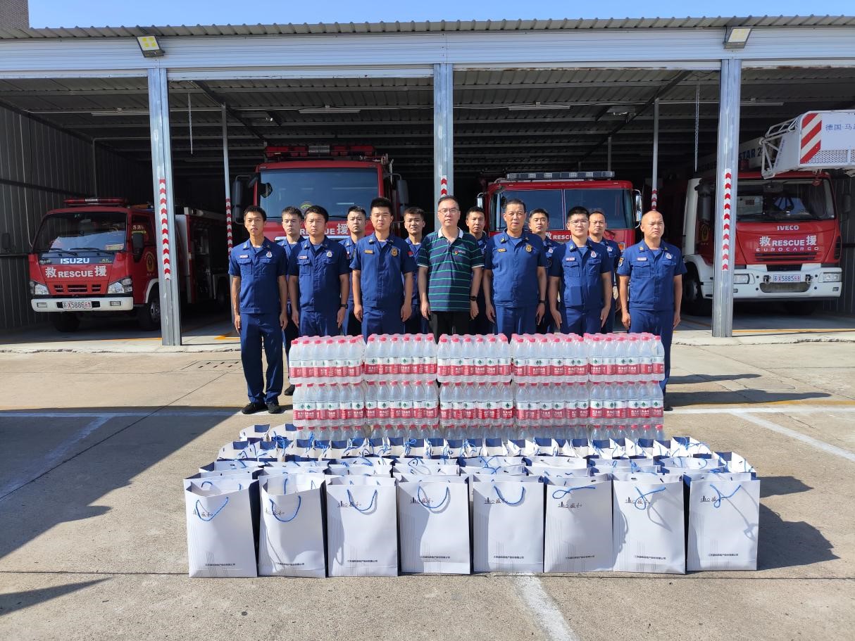 為慶祝中國人民解放軍建軍96周年,弘揚擁軍愛軍優良傳統,傳遞黨的關愛,同時進一步增強全體黨員干部的消防安全意識,提高自護自救能力。8月23日,沿海集團盛和黨支部組織黨員前往南通市公安消防支隊崇川區大隊孩兒巷中隊,開展“夏日慰問送清涼 致敬最美‘火焰藍’”主題黨日活動,致敬一線消防員,并為他們送上夏日防暑用品。