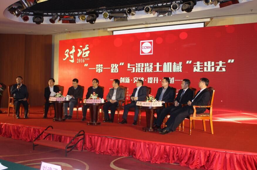 下午,由《建設機械技術與管理》雜志社社長周賢彪主持“一帶一路”與混凝土機械’走出去’對話,對話嘉賓分別為中國鐵建股份有限公司設備部部長覃為剛;中國冶金科工集團公司招標采購中心副主任錢洪濤;中國鐵路工程公司設備物資部副部長周高飛,中信建設股份有限公司采購部總經理王金軍,中聯重科股份有限公司副總裁蘇用專,徐州徐工施維英機械有限公司總經理助理章躍,山推建友機械股份有限公司副總經理龐增領,青島新型建設機械有限公司總工徐君飛。