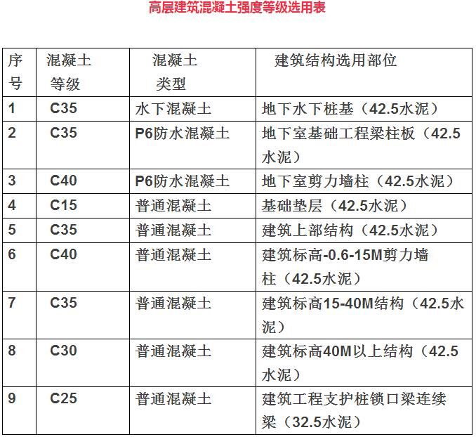 2建筑工程混凝土標號選擇