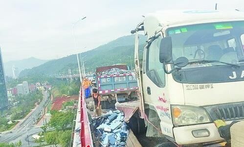 昨日上午9點(diǎn)多,記者趕到海滄大橋上的事故現(xiàn)場(chǎng),現(xiàn)場(chǎng)仍在處理,占用了主橋面其中一個(gè)車道,形成道路瓶頸。該事故直接對(duì)海滄轄區(qū)交通造成影響,上大橋的多條主干道出現(xiàn)擁堵,許多進(jìn)島車輛開了一個(gè)多小時(shí)還沒能上海滄大橋。