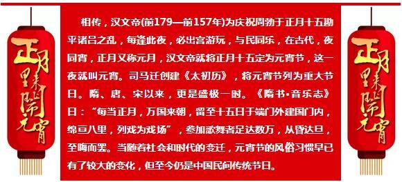 農歷正月十五是“元宵節”,此節日民間有掛燈、打燈、觀燈燈習俗,故也稱燈節。鬧花燈是元宵節傳統節日習俗,始于西漢,興盛于隋唐。隋唐以后,歷代燈火之風盛行,并沿襲傳于后世。而正月十五,又是一年一度的鬧花燈放煙火的高潮。