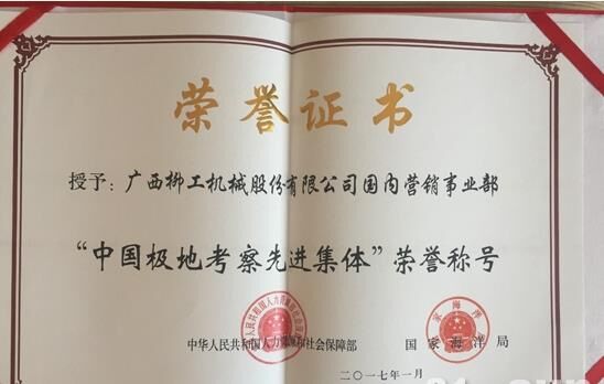2017年4月24日,北京 — 今天,由人力資源和社會保障部、國家海洋局聯合表彰的中國極地考察先進集體和先進個人活動在北京舉行,柳工榮獲“中國極地考察先進集體榮譽”。