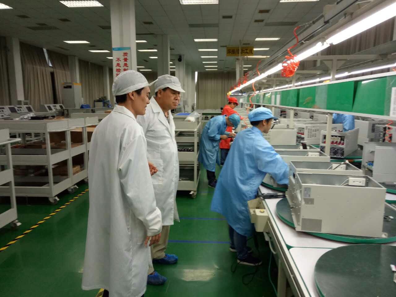 隨后,李小松總經理等領導陪同符會長一行參觀了變頻器的生產加工過程和電控柜的生產裝配流程,參觀了新產品試驗,研發實驗過程,成品的檢驗控制過程;特別是對起重物以回轉支撐為原點來控制起重物的橫向擺動量控制,還有前后擺動量及側向擺動控制!港迪變頻器已經在港口起重機上用量達到近70%!