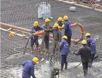 4.泵送混凝土的性能要求與混凝土輸送泵輸送工藝相同。剛開始泵送混凝土時,應緩慢壓送入模,同時應檢查泵機是否運轉正常,管道接頭是否嚴密,有無漏氣、漏漿、漏水,如有異常情況,應停泵檢查,修理好后再轉入正常工作。