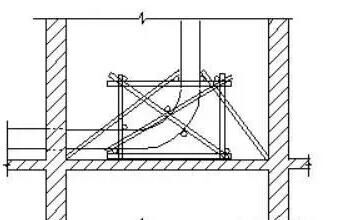 1.泵管隨層接,澆注墻體及柱混凝土時,端頭軟管放在該施工位置的操作架上,輸送管路必須使澆灌部位在工作半徑之內。由于留洞口到操作位置需接90o彎管和平直管,保證平直管高出模板頂1M,彎管及平直管必須臨時固定牢固,搭設類似前圖所示的固定架子,保證泵管穩定。