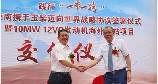 根據戰略合作協議,玉柴股份配套亞南集團的銷售額和配套比例將逐年增長,到2019年達到其配套國產動力品牌的100%。簽約現場還舉行了海外智能電站項目交付儀式,該項目出口產品全部配套玉柴發電動力,產品總功率達10兆瓦,其中包括4臺YC12VC發電機。這是玉柴股份和福建亞南集團精誠合作、奮勇拼搏取得的重要成果。