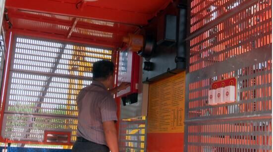 為取得進入歐洲市場的通行證,8月3日由臺灣CE認證機構人員對方圓集團SC200/200施工升降機進行了檢測認證。檢測人員首先對吊籠運載量限制器、高度限位、各大機構、電氣控制系統、安全保護裝置進行了檢測。另外,還進行了額定載荷、超載試驗。