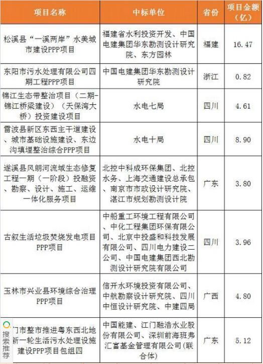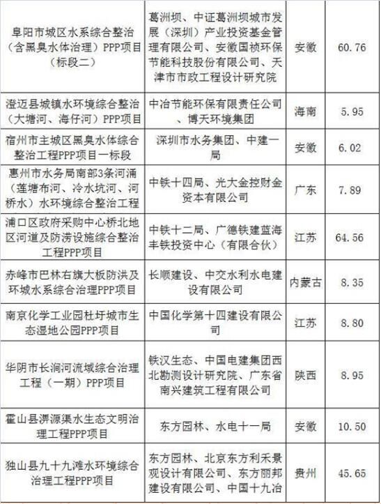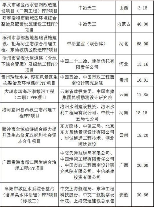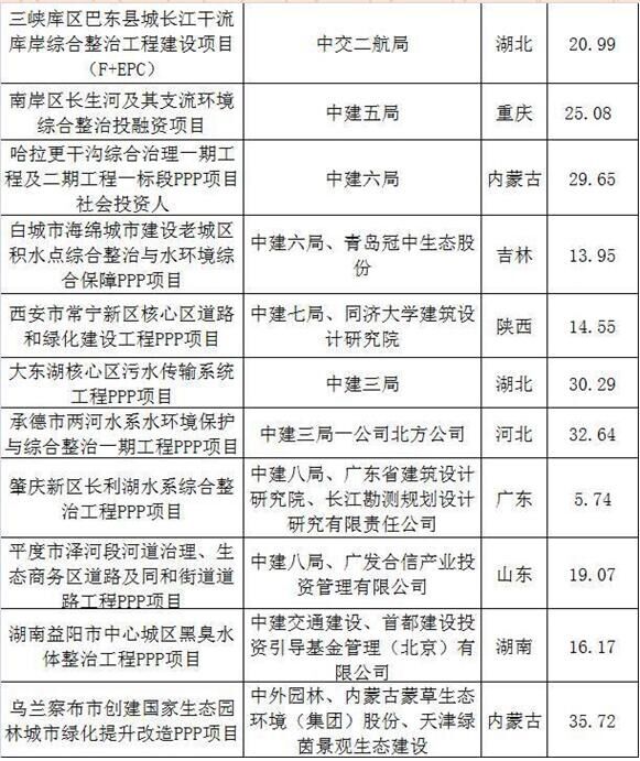 2017上半年建筑企業承攬環保工程PPP項目清單