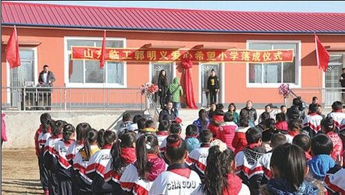 11月19日,在位于遼寧省鞍山海城市岔溝鎮的下栗小學,孩子們用快樂的歡呼聲宣告著一段新生活的開始。寬敞而明亮的校舍,現代化的微機房,擺滿新書的圖書室……當天,山東臨工郭明義愛心希望小學正式落成,嶄新的校園讓孩子們告別了擁擠的課堂和坑洼不平的操場。全國總工會副主席、雷鋒傳人郭明義,海城市相關領導,以及希望小學的老師和同學等共同參與了此次落成典禮。