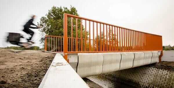 這座8米長的橋梁橫跨一條水溝,以兩條道路連結起來,并在與BAM Infra建設公司合作之下,測試重達2噸的橋梁承載力。設計師表示,這座橋梁雖是替單車打造,卻可承載多達40輛卡車的重量。