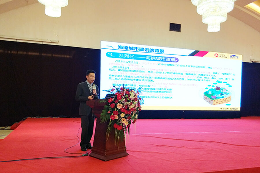 傅國華也帶來題為《固體廢棄物制品在海綿城市建設的應用》的專題報告,他從海綿城市建設的背景、建筑垃圾生產透水磚的應用等方面介紹了固體廢棄物制品在海綿城市建設的應用相關問題。