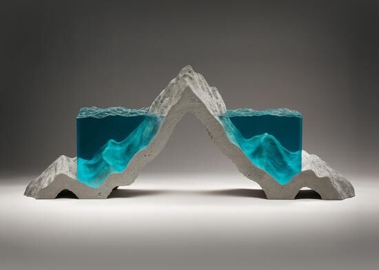 水、陸地、巖石被這位來自悉尼的雕塑家Ben Young用玻璃和混凝土打磨得惟妙惟肖,逼真同時很藝術。Ben Young出生在新西蘭,從事玻璃雕塑制作已有10多年的時間。他的作品看上去嚴絲合縫,精確細膩,盡管是混凝土這種粗糙的材料,也被打磨得如奶油般光滑。