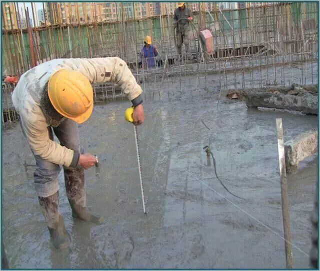 3、超平:拿水準儀抄平,一般抄五零線,標高一定要計算準確,工人依據五零線來找平,打出來的混凝土才有平整度。