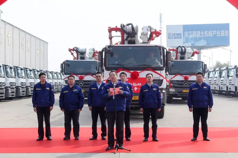 風來翠綠滿眼綠,恰逢春暖花開時。3月23日,徐工混凝土機械產業基地彩旗飄揚,百臺V7系列產品嚴陣以待、整裝待發。徐工施維英各條戰線的干部職工代表共同見證激動人心的時刻,感受新一代產品的魅力與風采。