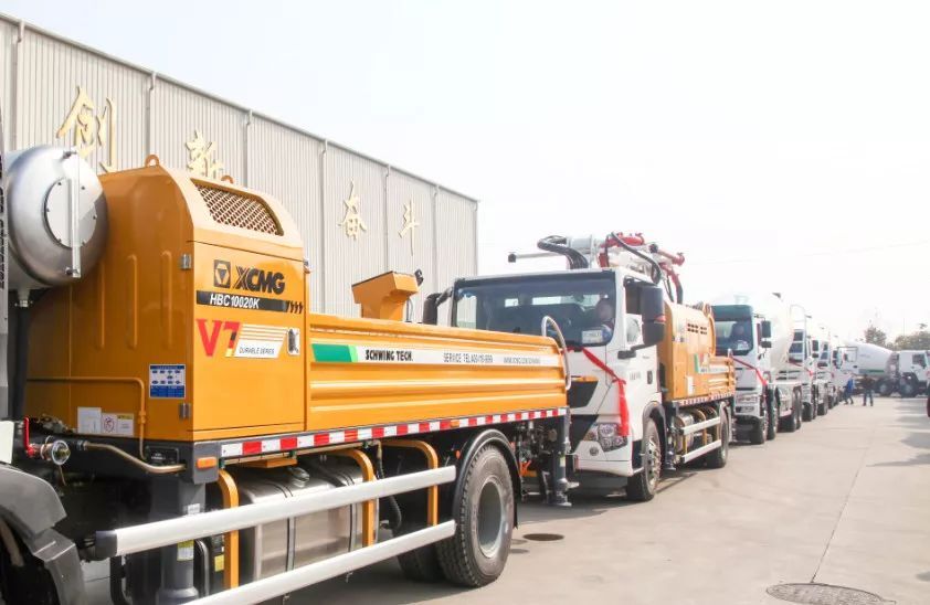 此次發車的V7系列產品涵蓋泵車、車載泵、拖泵、攪拌車、攪拌站等成套混凝土機械設備,共100余臺,發往全國各地和海外,為全球基礎建設貢獻力量。