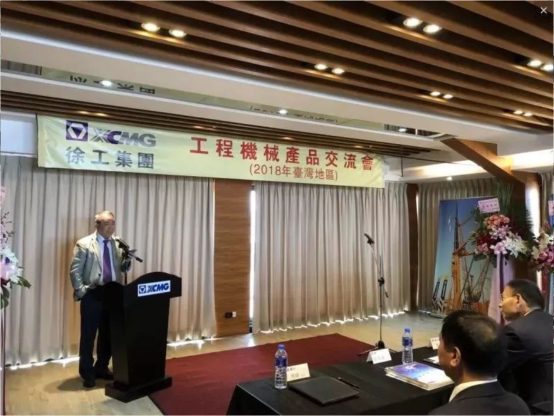 王民董事長先生在現場發表了熱情洋溢的講話。他回顧了徐工集團在臺灣市場的發展和建設歷程,并表示,徐工將按照“技術領先、用不毀”行業金標準和高端、高附加值、高可靠性、大噸位“三高一大”的產品戰略,為臺灣的客戶朋友們提供先進的、質量完美的產品,為寶島臺灣的建設發揮光和熱。