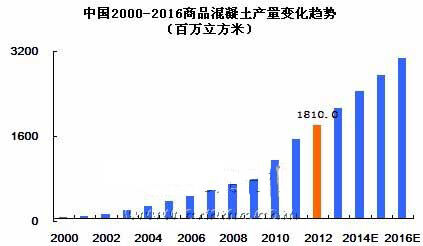 中國商品混凝土市場自2000年開始,增長就大幅度提升,2000-2012年平均增幅高達30%左右。但受全球經(jīng)濟危機的影響,中國2008年的商品混凝土市場也受到了不小的沖擊,商品混凝土的增長率大幅度下滑。不過與歐盟、美國等其他發(fā)達國家混凝土負增長率而言,中國混凝土市場表現(xiàn)的還是十分活躍的。這也反映出了中國的商品混凝土行業(yè)進入高速發(fā)展時期的特征。但中國市場目前的市場狀況十分紊亂,行業(yè)內(nèi)需要進行一番整合,清理一些市場上不規(guī)范的企業(yè),相信整合后對我國商品混凝土行業(yè)將起到較大的推動作用。中國混凝土網(wǎng)預(yù)計“十二五”期間,預(yù)拌混凝土產(chǎn)量還將有小幅增長,到2016年中國預(yù)拌混凝土產(chǎn)量將突破30億立方米,混凝土行業(yè)將邁上一個新的臺階,但總體行業(yè)回歸平穩(wěn)狀態(tài)。