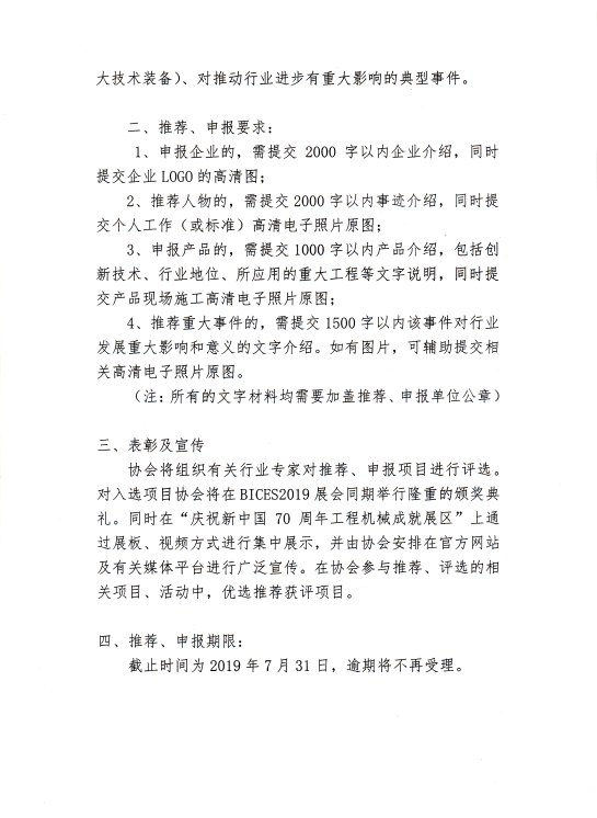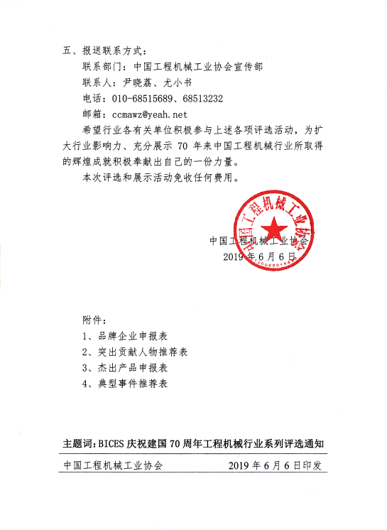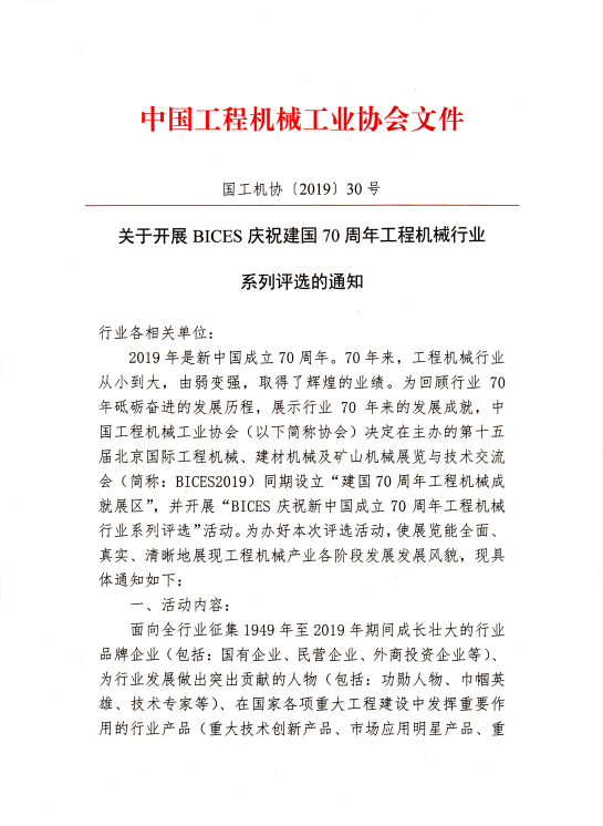關于開展BICES慶祝建國70周年工程機械系列行業評選的通知