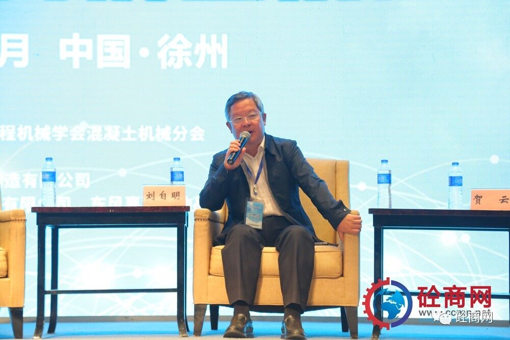 中國黃金建設集團有限公司賀云總裁對話中提出混凝土機械的設備,主要需要從減少人力、提高效率方面以及從施工工藝方面來提升設備創新;