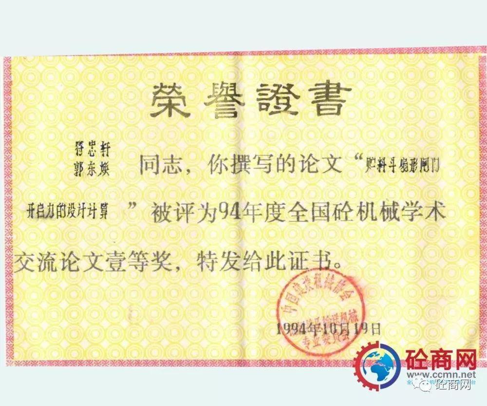 行業(yè)引領發(fā)展,研發(fā)人員積極性高。本人作為科研人員先后發(fā)表了《儲料斗扇形閘門開啟力的設計計算》被評為1994年度全國砼機械學術交流論文一等獎,本文引入“水力學半徑”的概念,較為詳盡的介紹了目前在混凝土攪拌站、配料站上大量采用的扇形閘門料斗的開啟力計算,為配料機構的設計選型提供了理論依據(jù);發(fā)表的《談裝載機上料形式混凝土配料(攪拌站)的發(fā)展》被評為1992年度全國砼機械學術交流會優(yōu)秀論文獎,本文針對當時混凝土攪拌站上料型式較多:懸臂拉鏟、鏈斗機及裝載機上料型式等,分析了國內發(fā)展的實際,提出了裝載機上料形式為未來發(fā)展方向;1997年發(fā)表在《建設機械技術與管理》雜志第五期的《混凝土泵攪拌葉片的合理布置》,以全球量大面廣的S閥為例,分析了幾種葉片布局形式對混凝土泵吸料性的影響,設計了一種正泵送料、反泵扒料合理的攪拌葉片布局形式。