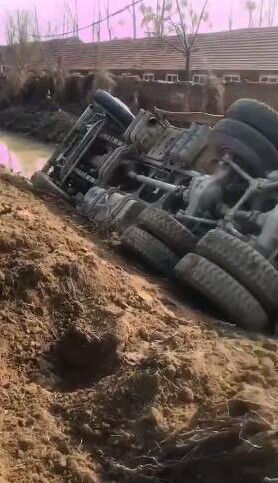據網友爆料,2019年12月29日下午1時左右,河南省濮陽市濮陽縣子岸鄉岳辛莊村東頭發生了一起側翻事故。一輛水泥罐車疑似超載導致側翻到路旁的水溝里面,從圖片上可以看出,水泥罐車直接來了個四腳朝天,所幸現場沒有人員傷亡,具體原因交通部門正在進一步調查!