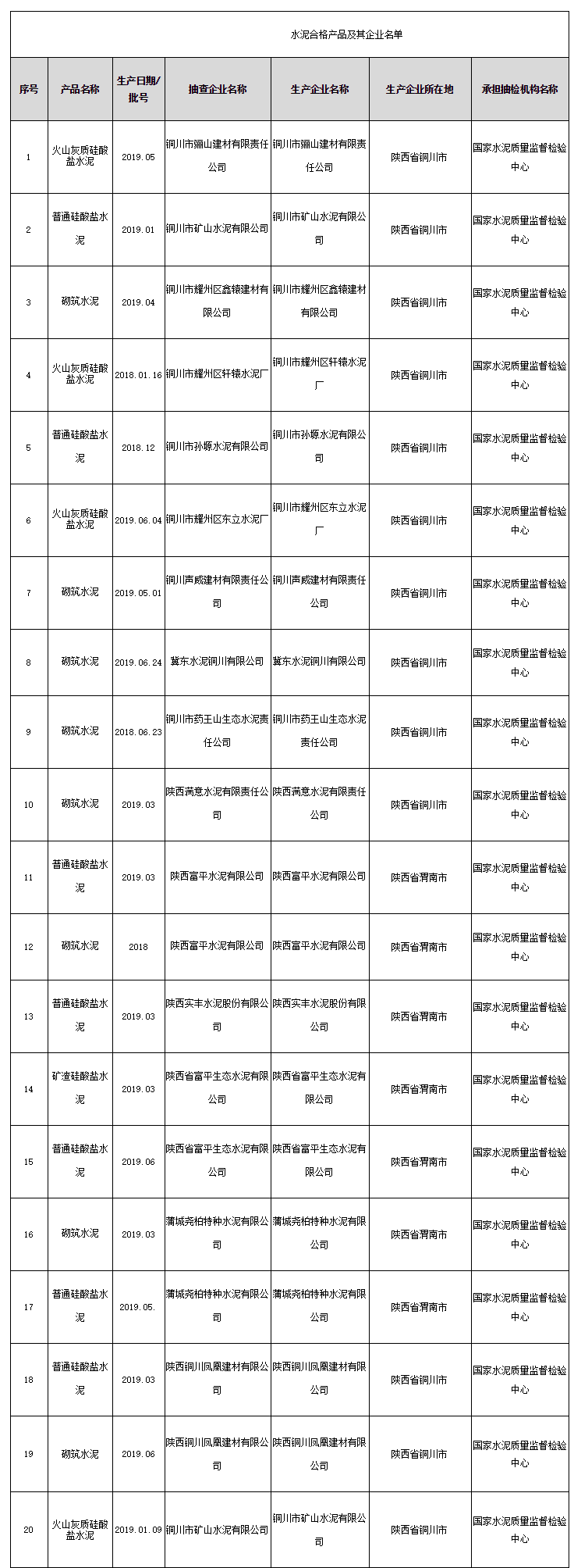 2020年3月31日,陜西省市場監(jiān)督管理局網(wǎng)站公布水泥產(chǎn)品質(zhì)量監(jiān)督抽查結(jié)果。此次水泥產(chǎn)品在銅川、渭南等地的生產(chǎn)領(lǐng)域中抽取,共抽查生產(chǎn)企業(yè)15家,抽取樣品20批次,經(jīng)檢驗(yàn),合格樣品20批次。