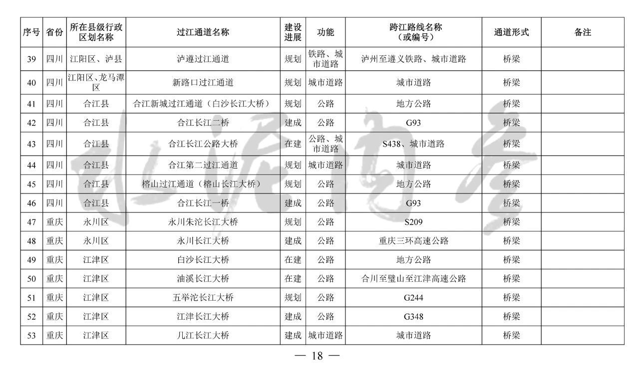 ??四、本《規劃》主要布局橫跨長江干線主要航道、具有交通功能的過江通道項目,對于連接洲島與沿岸、洲島之間的通道項目和不具備交通功能的跨江、沿江建筑物,由省級發展改革委統籌布局編制相關規劃報送我委銜接后組織實施。