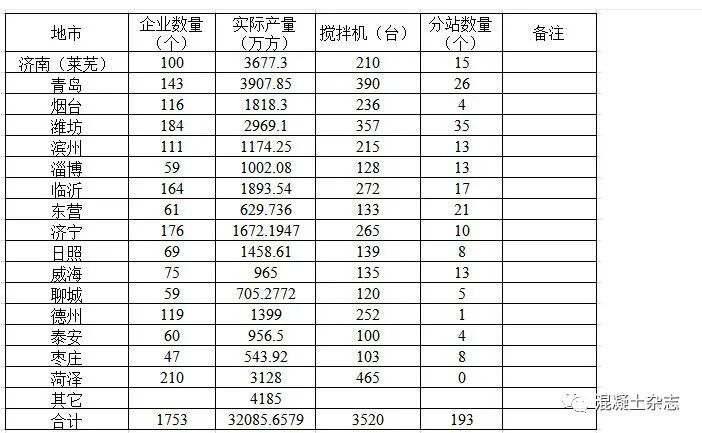 山東省2019年預(yù)拌混凝土生產(chǎn)企業(yè)及產(chǎn)量統(tǒng)計(jì)