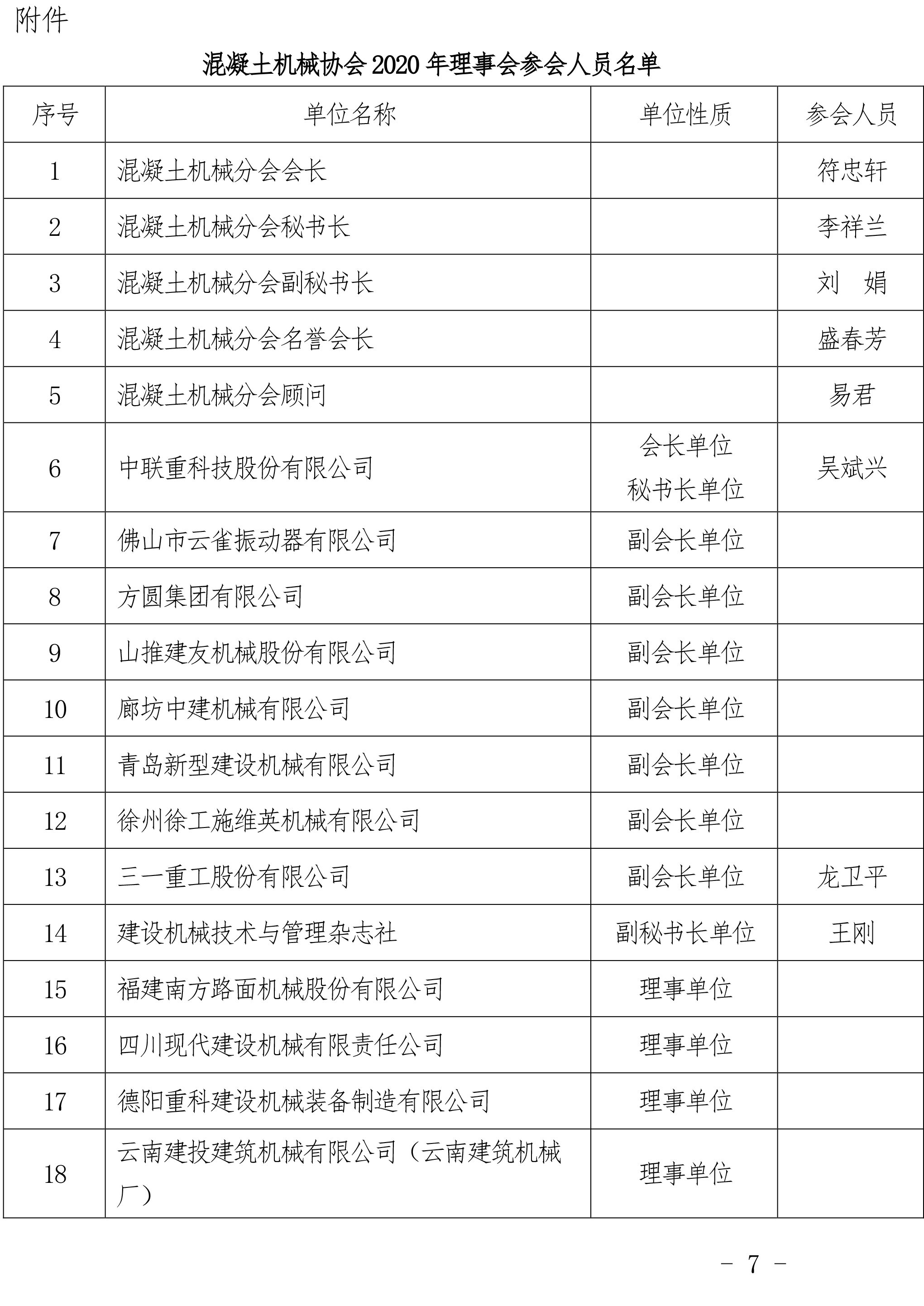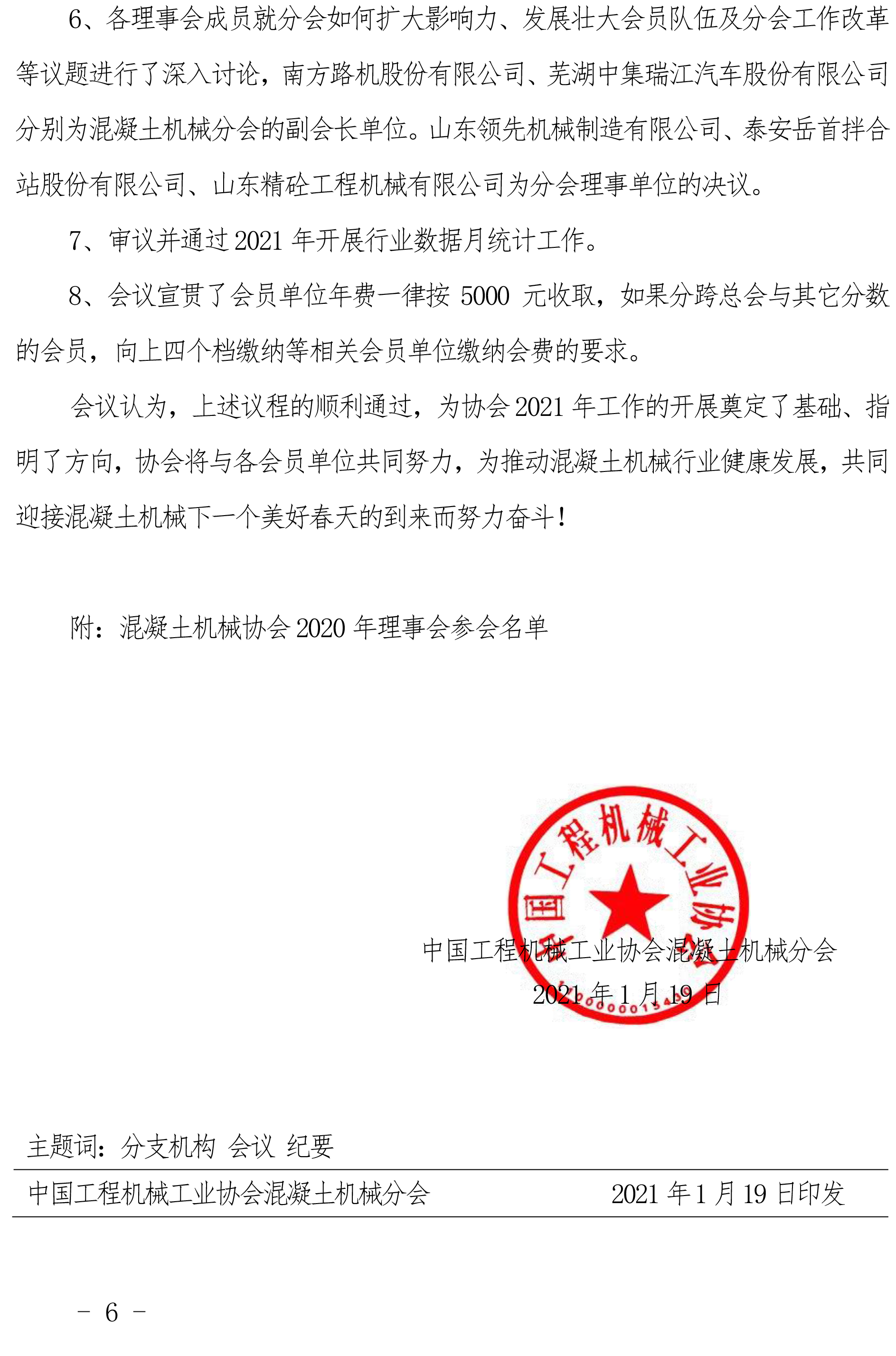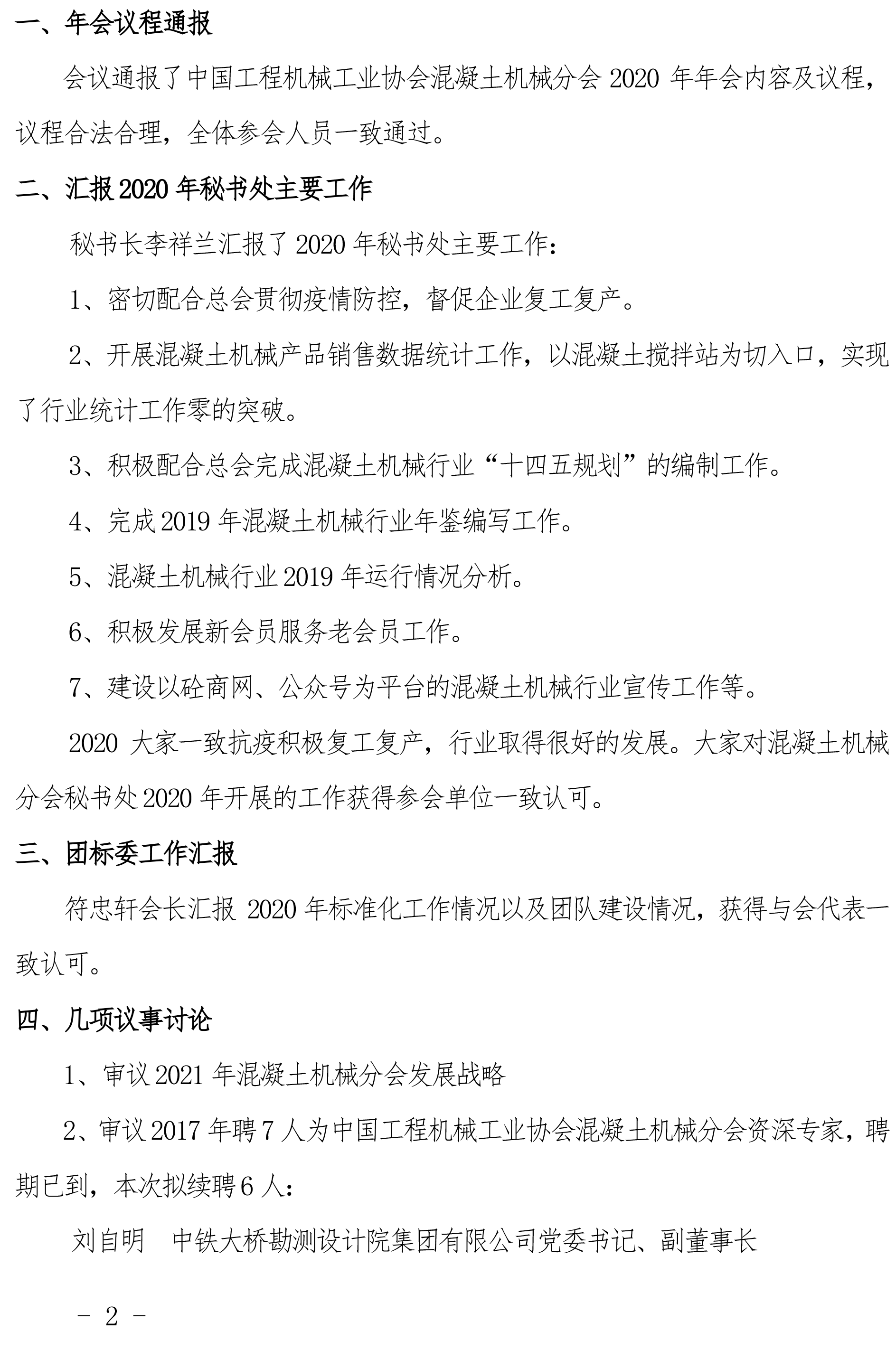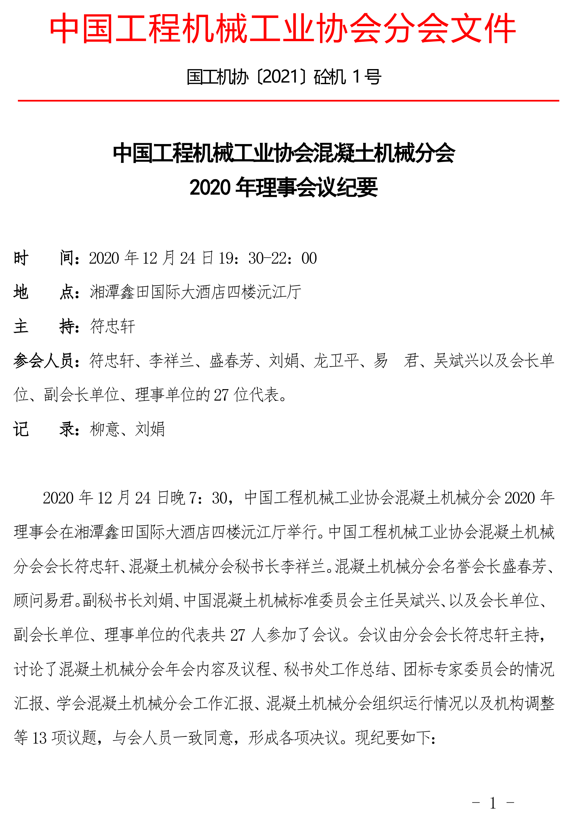 中國工程機械工業協會混凝土機械分會 2020 年理事會議紀要