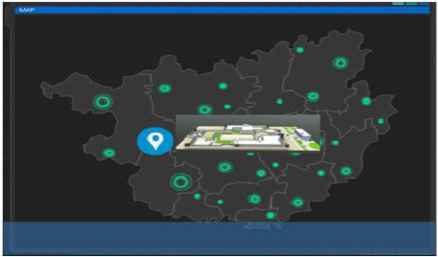 以直觀的可視化交互技術顯示攪拌站的整體分布,點擊每個分布圖標后,懸浮方式顯示各個攪拌站3D建筑場景效果圖,可點擊場景效果圖進入該攪拌站的3D虛擬仿真管理場景。