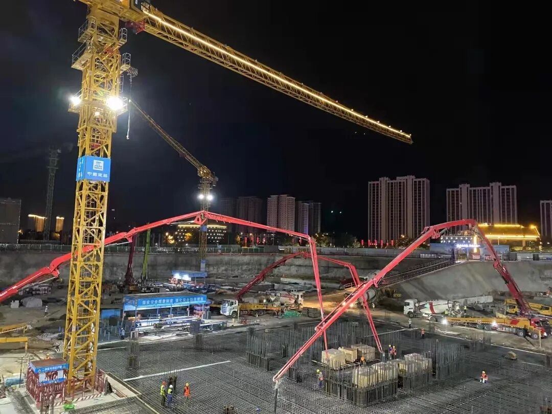 此次施工創造了天水市單次筏板混凝土澆筑量最大及澆筑厚度最大等多項記錄,標志著中深財富中心超高層主體施工已全面展開。