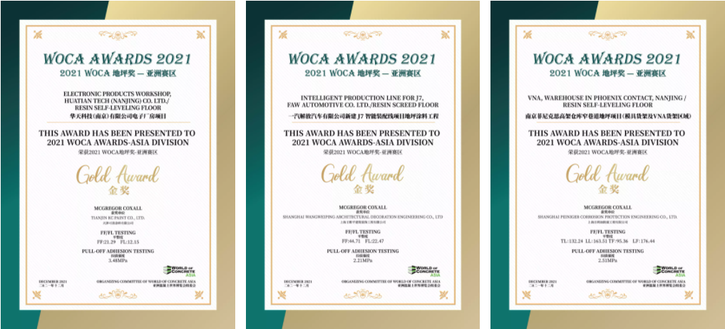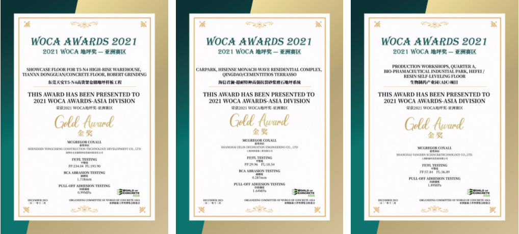 經過對多個項目進行地坪檢測,三大類中13個優秀項目獲得了2021 WOCA 地坪獎(WOCA AWARDS)-亞洲賽區的榮譽。