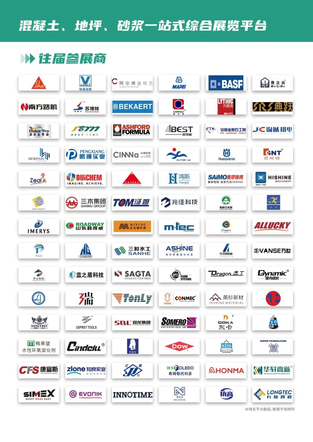 展品范圍:整平設備;抹光設備;拋光設備;拋丸設備;特種涂料;吸塵/清潔設備;小工具類;耗材