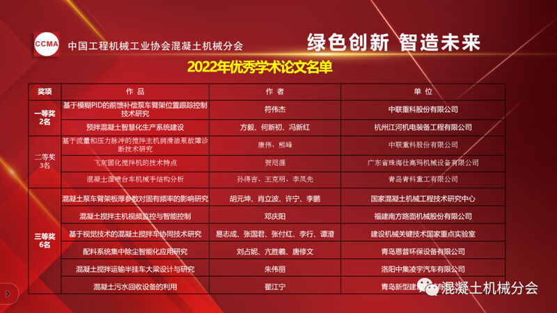 中國工程機械工業(yè)協(xié)會混凝土機械分會副秘書長龍衛(wèi)平先生宣讀《關(guān)于發(fā)布2022年混凝土機械優(yōu)秀論文獲獎名單的通知》。