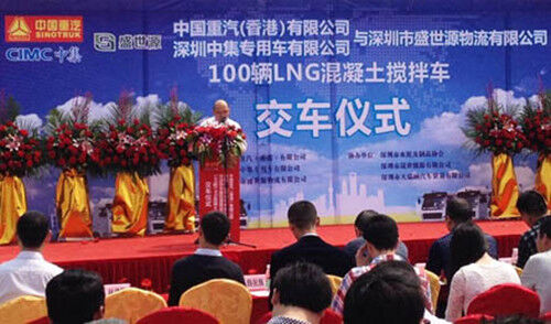 中國重汽100輛LNG混凝土攪拌車在深圳交車