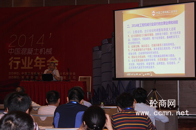 2014年工程協會混凝土機械分會年會在山東省青島市召開,來自行業協會、各大混凝土機械主機廠、配套件企業、大專院校和行業媒體等各界人士出席會議,中國工程機械工業協會會長祁俊主持會議。