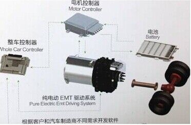 動力總成采用電驅(qū)動機(jī)械式自動變速器,采用四檔自動變速傳動,無離合器,無機(jī)械式同步器,利用電驅(qū)動主動同步代替?zhèn)鹘y(tǒng)的同步器摩擦被動同步,純EMT相比傳統(tǒng)自動變速器AMT具有高效率和低成本優(yōu)勢。