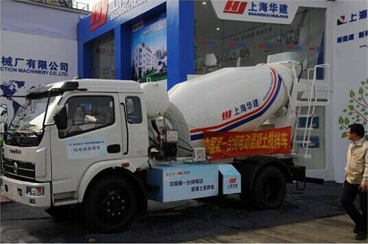 上海華建2014款東風(fēng)底盤純電動4m3攪拌運(yùn)輸車,可以名符其實(shí)的成為中國第一輛純電動混凝土攪拌運(yùn)輸車。一次充電可行駛40公里,快充過程30分鐘即可充滿。