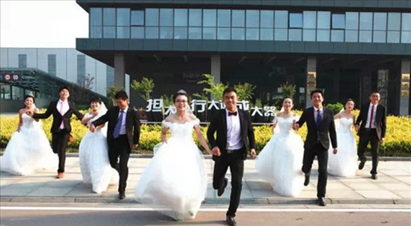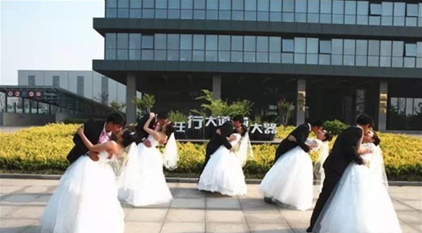 繽紛的禮花、鮮紅的玫瑰、潔白的婚紗、幸福的笑容……一幅美麗浪漫的愛情畫卷在徐工挖機盡情舒展。5月16日,徐工挖機5對新人在公司領導、親人、同事的共同見證下互贈愛情信物、宣讀愛情宣言、述說浪漫故事……許下相伴一生的諾言:情定徐工,相約百年!