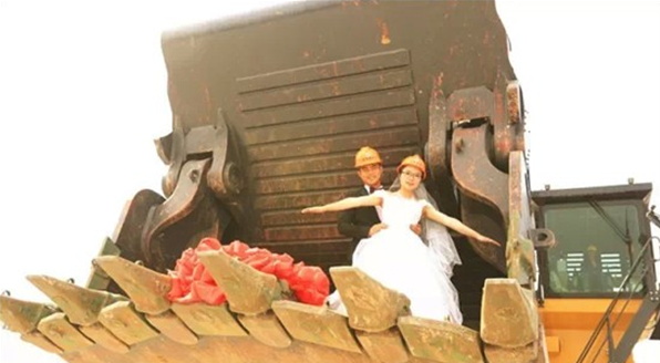 史上最大的婚車,史上最酷的愛情長廊,史上最闊綽的求婚,史上最霸氣的婚照---當愛情綻放在徐工,聽說婚紗和挖掘機更配哦。