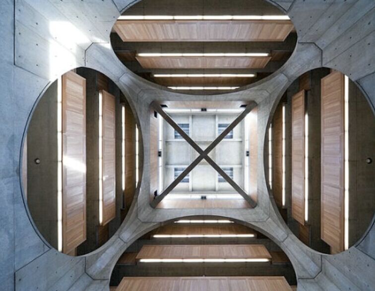 坎姆貝爾的拱頂覆蓋的是鉛板,康認為鉛板具有和混凝土、鈣華石相通的材料特征。隨著時間的延伸鉛板會逐漸變成自然的質感,在陽光的作用下有雪的反光效果。這些材料和諧的組織在一起,反映出康對材料自然本質的熱衷和追求。