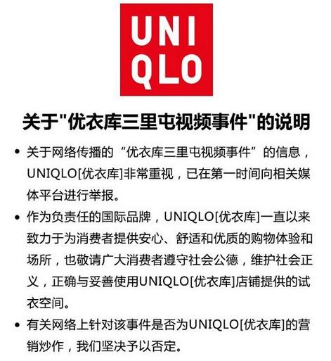 簡(jiǎn)單來(lái)說(shuō)就是一男一女在北京三里屯的優(yōu)衣庫(kù)試衣間里那什么了,