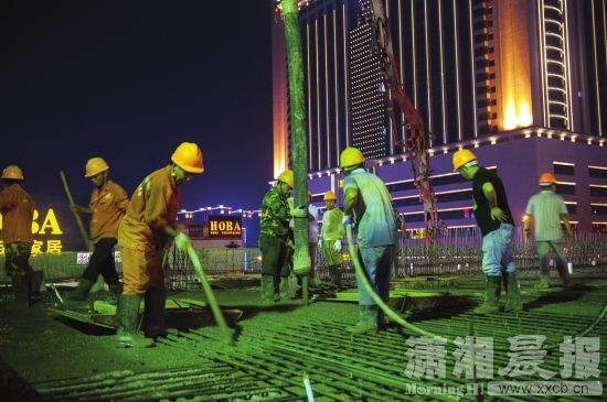 8月15日晚8時(shí),長沙萬家麗廣場對(duì)面,一輛水泥罐車開進(jìn)萬家麗路與荷花路交會(huì)處東南角。接著這輛罐車伸出高高的手臂,連續(xù)不斷地向萬家麗路高架輸送預(yù)拌混凝土,數(shù)十名工程技術(shù)人員在綁扎好鋼筋的最后一跨箱梁上嫻熟操作。上海城建市政集團(tuán)萬家麗路快速化改造工程項(xiàng)目副總指揮、項(xiàng)目經(jīng)理傅建平透露,15日晚8時(shí)至16日上午10時(shí),十名工程技術(shù)人員要完成120米橋面混凝土澆筑,到16日上午10時(shí),萬家麗路快速化高架主線結(jié)構(gòu)全面貫通。今年國慶節(jié),作為湖南長沙乃至湖南首條按照快速化改造的高架橋,將實(shí)現(xiàn)全面竣工通車。