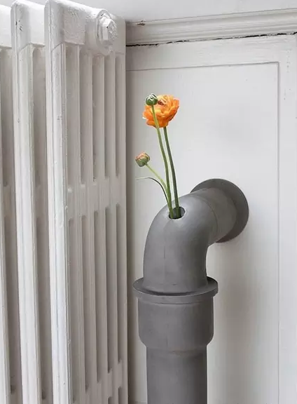 Sergey Makhno將混凝土制成規整的方體,上面被開了許多幾何形體的洞,放進玻璃瓶。這款混凝土跑中,混凝土的粗糙,花朵的嬌嫩,形成鮮活的對比。