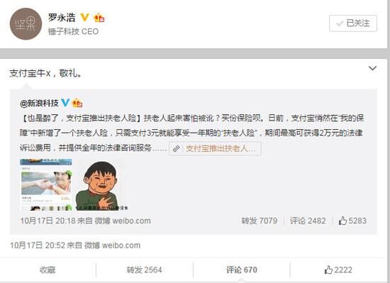 “扶老人險(xiǎn)”一上線立即引起了網(wǎng)友們的熱議,就連羅永浩老師也在微博上公開力挺,而據(jù)支付寶方面的統(tǒng)計(jì),該險(xiǎn)種開售3天便有2.6萬人投保,可見其關(guān)注度。