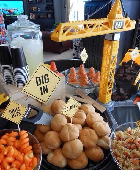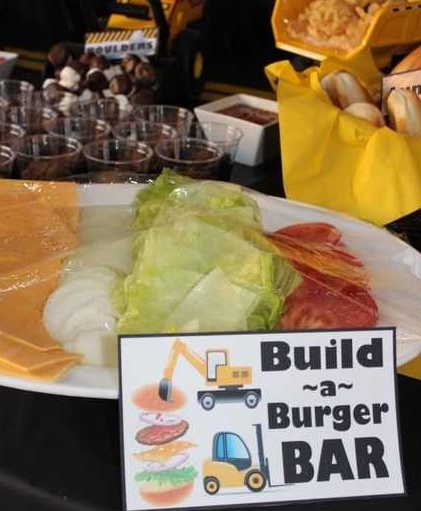 這里是主食區,鑒于工程機械行業人人心靈手巧,請用此挖掘機DIY漢堡享用!各位,吃飽了也別忘了把這些土塊清清干凈那!