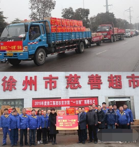 近日,八輛大卡車滿載著徐工全體員工的捐款和衣物,緩緩駛入徐州市社會幫扶中心,送去徐工承擔的社會責任、徐工人的美德。2015年,在各單位的全力支持和全體員工暖暖愛心的捐助下,徐工集團扶貧濟困“一日捐”活動共收到捐款1382175.5元、捐衣物13830件,連續14年捐款捐物全市第一。